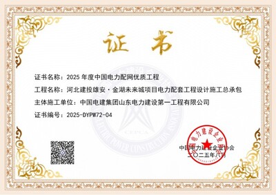 雄安金湖未來(lái)城項(xiàng)目電力配套工程榮獲202...